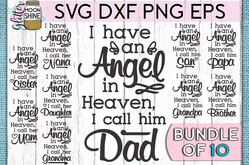 I Have An Angel In Heaven Bundle of 10 svg eps dxf png ... for Silhouette